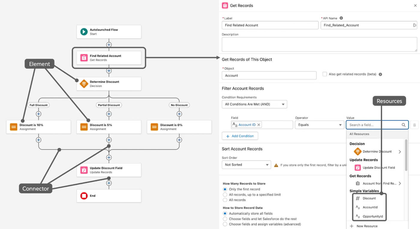 Salesforce Flow Builder enables teams to design powerful, multi-step automation workflows using a visual, drag-and-drop interface for complex business processes. (Source: Salesforce)