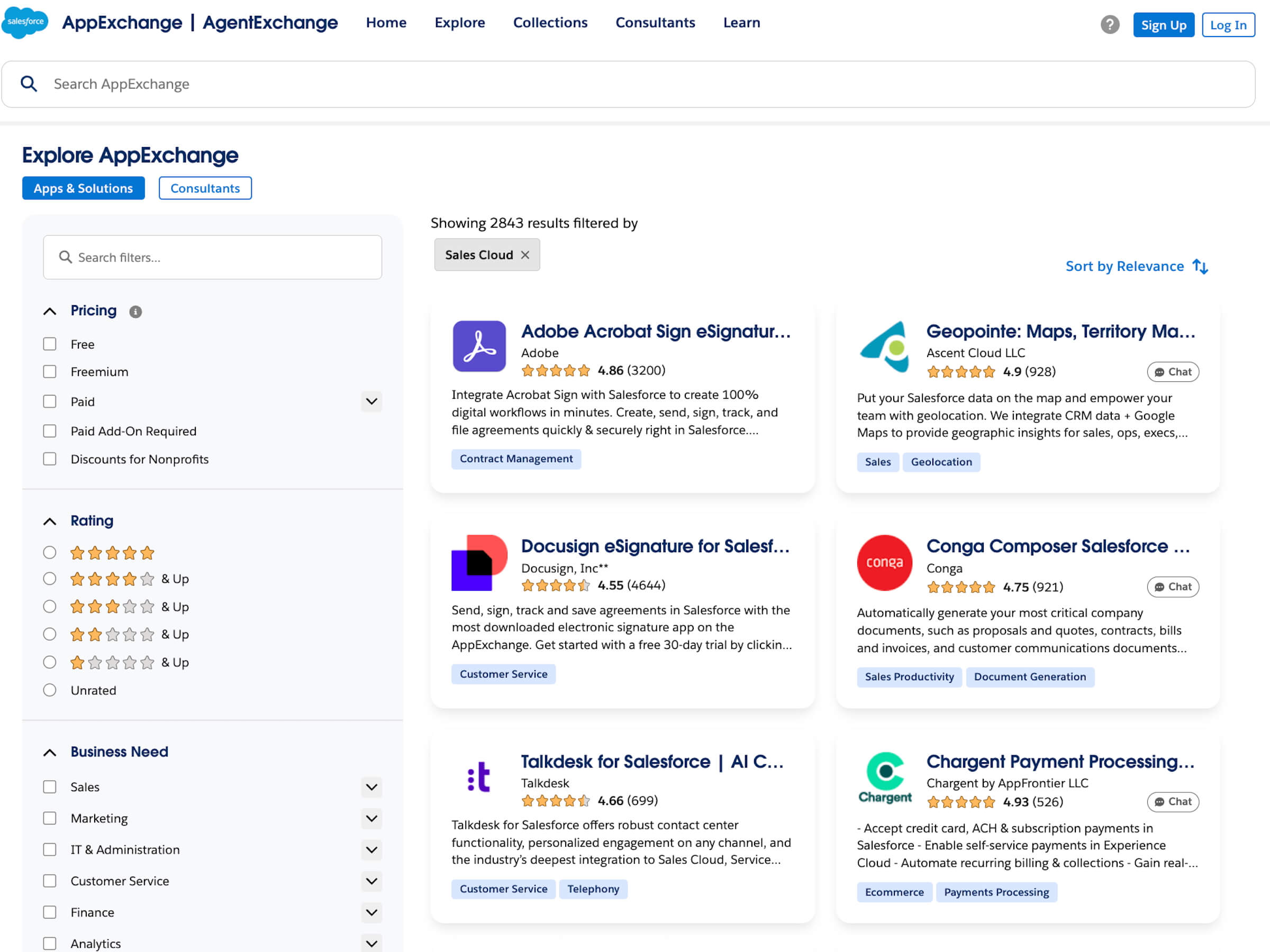 Salesforce Sales Cloud offers extensive integration options through the AppExchange, with thousands of apps supporting sales, automation, document management, and analytics. (Source: Salesforce)