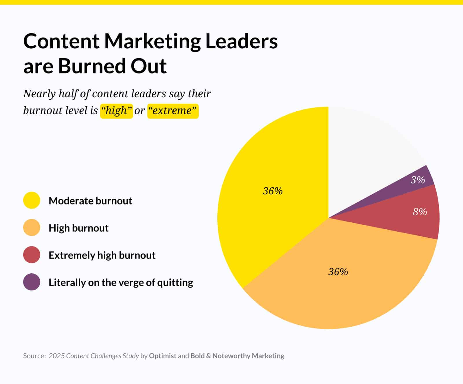 36% of content marketers say they’re experiencing “high burnout.” 🫠 (Source: Yes Optimist) |