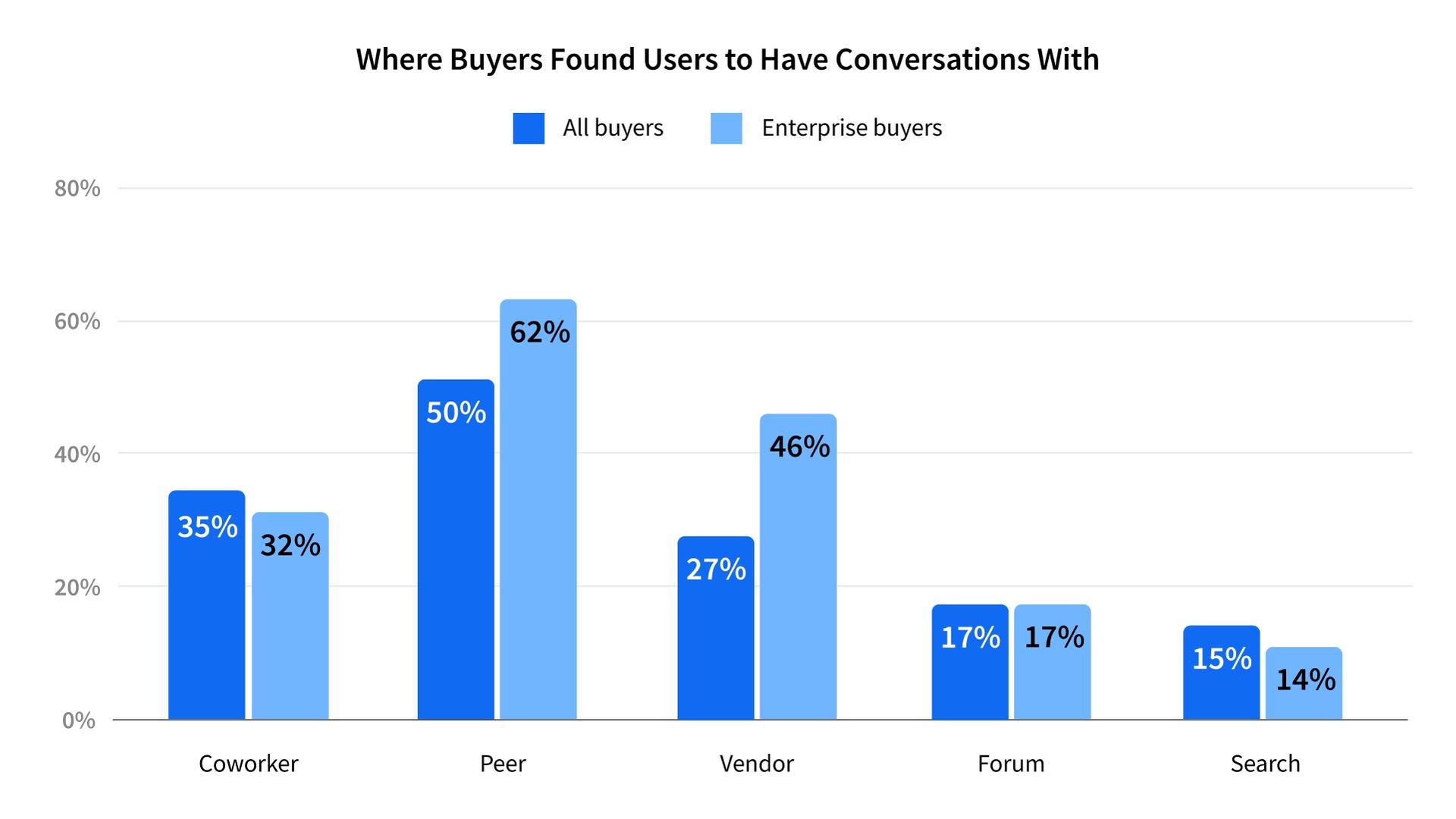 Buyers are also doing tons more research before purchasing, including reading reviews on review platforms like TrustRadius and G2, and on LinkedIn. They’re having more conversations with peers, coworkers, forums (see: Reddit), and yes, with vendors directly. They’re seeking reassurance and validation that they’re making the right buying decision. |