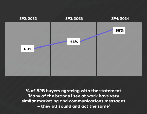 Not promising: 68% of B2B buyers can’t tell the difference between vendors’ branding and communications. (Source: Dentsu) |
